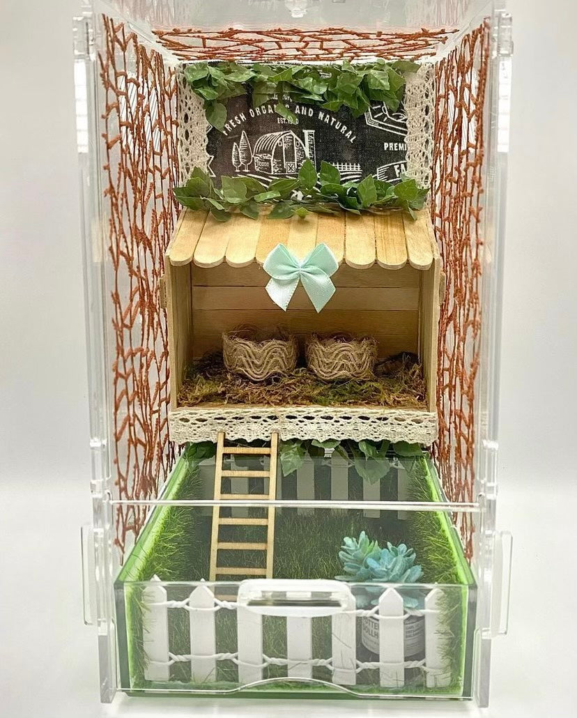 No need to make it yourself if you don't want to - I'll make it for you! This listing is for 1 Mini Acrylic Enclosure outfitted with the Chicken Coop DIY Miniature set you see in these photos!