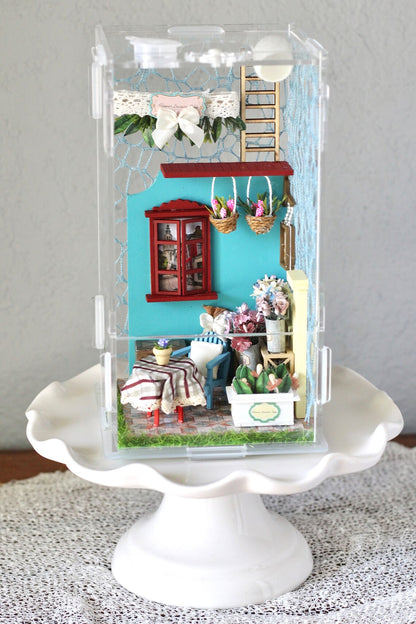 No need to make it yourself if you don't want to - I'll make it for you! This listing is for 1 Mini Acrylic Enclosure outfitted with the Flower Room DIY Miniature set you see in these photos!