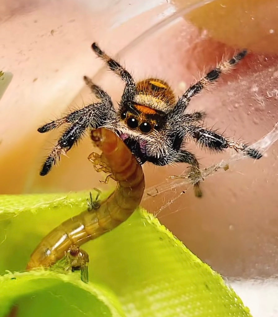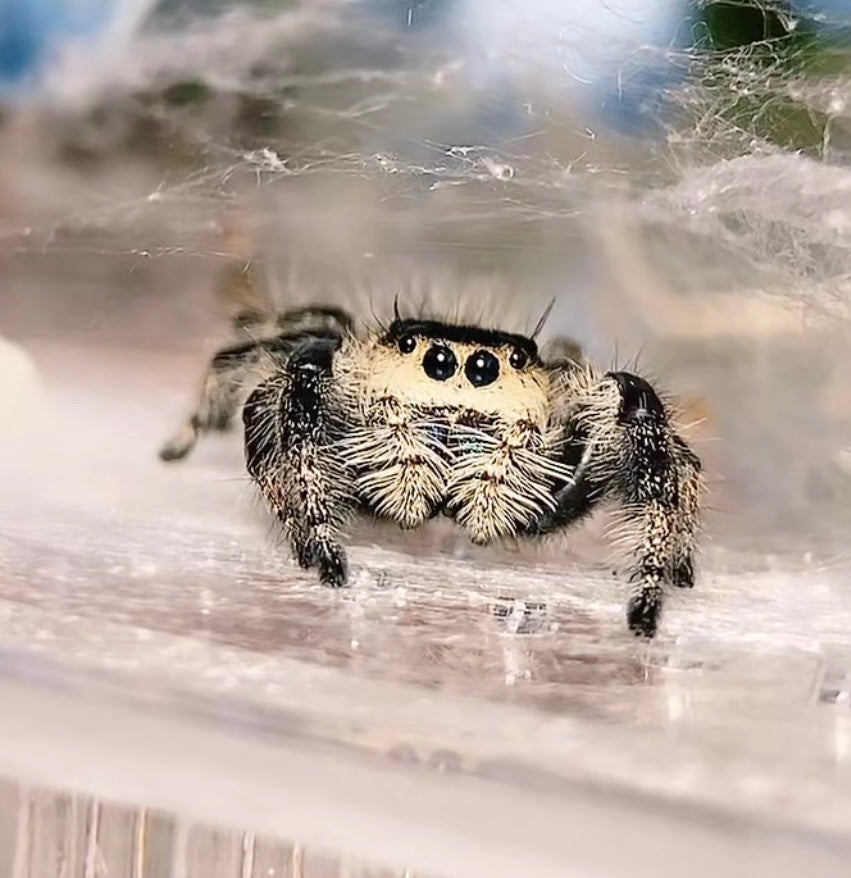 Jumping spiders are very intelligent for their size. They have excellent 3D vision in full color, good hearing and sense of touch and smell. It's even been said that they have the intelligence of a 3 year old human and have even been known to actually dream. They are super playful, love to explore, and most of all they love interaction with their human best friends. For these reasons they make excellent first time spider owner pets!